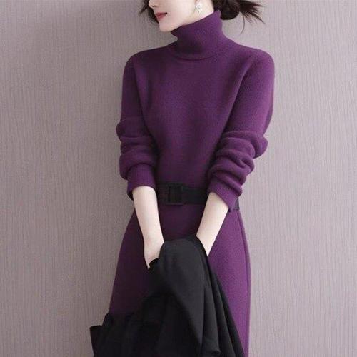 [핑크엘리제]터틀넥 슬림핏 겨울데일리룩 자누엘니트롱원피스