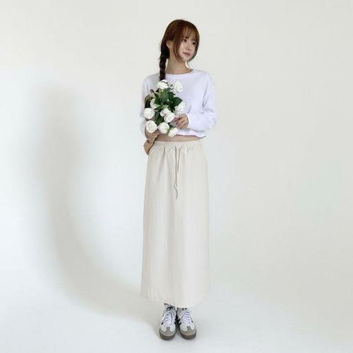 [신상오픈런]여성용 데일리 내추럴핏 편안한 폴리 밴딩 스트링 맥시 스커트