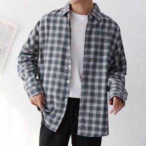 [에이치플러스몰]체크패턴 젠틀맨 내추럴룩 트리플컬러 데일리 긴소매트렌디 남방 INSUM22N