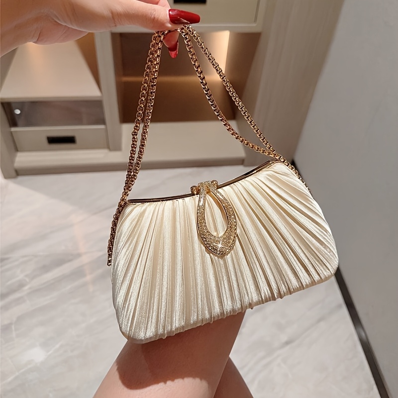 TEMU 신상 스톤 플리츠 이브닝 백 여성용, 웨딩 파티 클러치 숄더 체인 핸드백 결혼식 시즌 가방