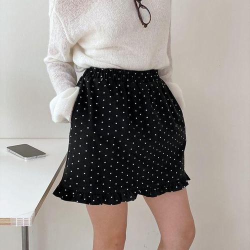 [신상오픈런]여자 러블리 잔도트 프릴 A라인 밴딩 포켓 미니스커트