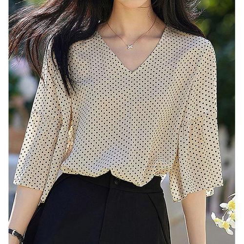 [패션시그널]와이드5부소매 브이넥 도트블라우스 40A0CA