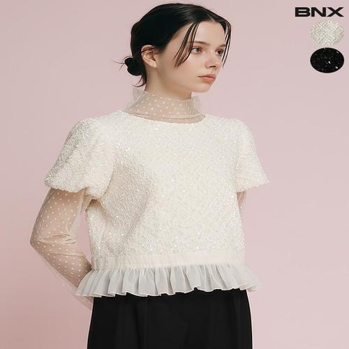 [BNX]여성 도트 메쉬 시퀸 블라우스 세트