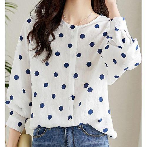 [셀러허브_여성트랜드패션]여자 여성 남방 시스루 블라우스 여성블라우스 도트 셔츠 블라우스 여성셔 여..
