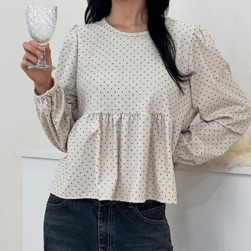 제이씨엠 JCM323 여성 봄 가을 도트 땡땡이 긴팔 블라우스