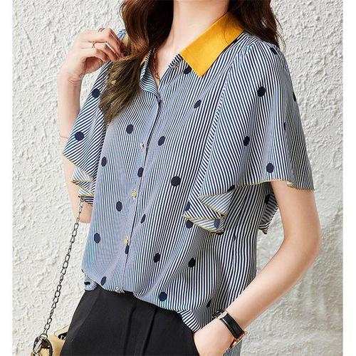 besteffie 여성 여름용 귀여운 프릴 도트 무늬 V넥 블라우스 빅사이즈 반팔 블라우스 K89