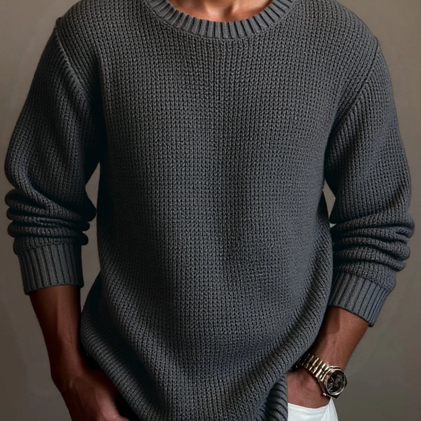 TEMU 남성용 라운드넥 스웨터 1개 - 남성용 골지 텍스처 니트 스웨터, 간편하고 트렌디한 스타일, 부드럽고 피부 친화적입니다. 텍스처 디자인은 품질감을 더하고 반복감을 피합니다. 캐주얼한 외출과 같은 다양한 상황에 적합합니다.