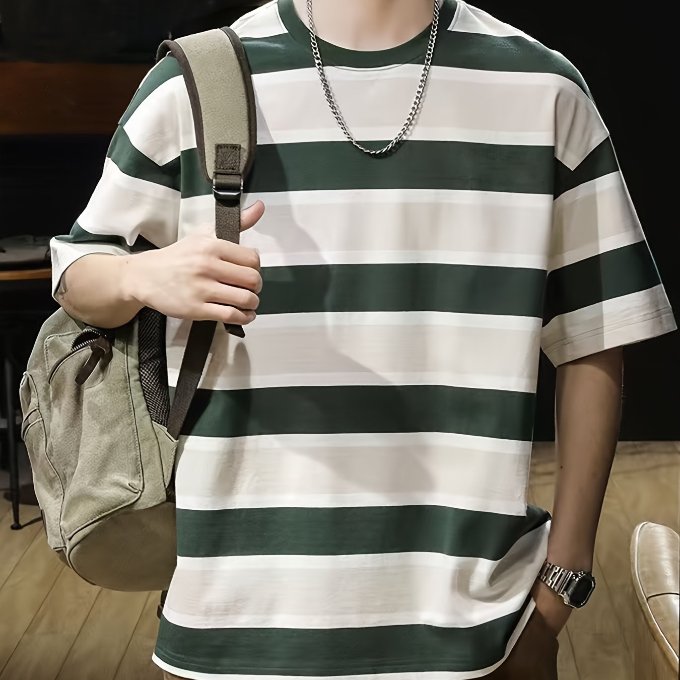 TEMU 남성 패션 캐주얼 티셔츠 | 100% 섬유, 라운드넥, 반팔, 세탁기 사용 가능, 사계절 내내 편안함, 데일리 웨어 | 부드러운 질감의 원단