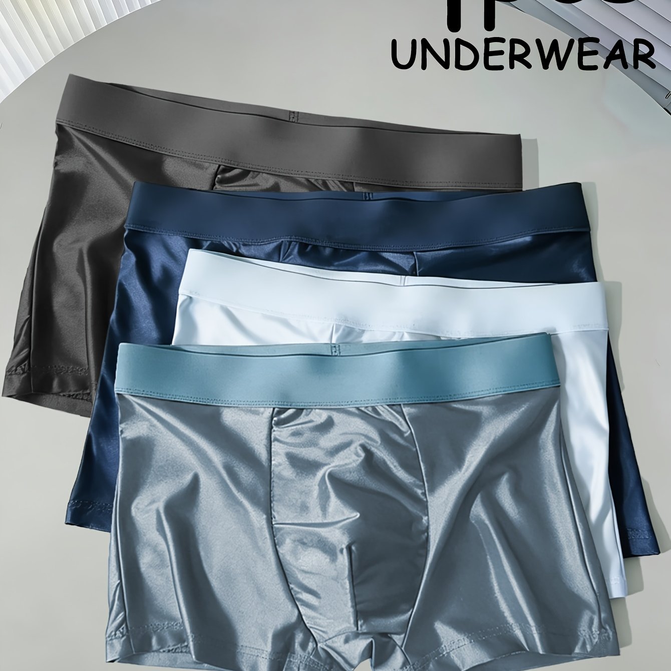 TEMU 남성용 아이스 실키 섬유 박서 브리프 4팩 - 초경량, 통기성, 중간 신축성 솔리드 컬러 쇼츠, 캐주얼 웨어에 이상적, 편안한 디자인, 매끄러운 소재, 4가지 색상: 네이비 블루/라이트 블루/그레이/블루, 대량 도매 할인