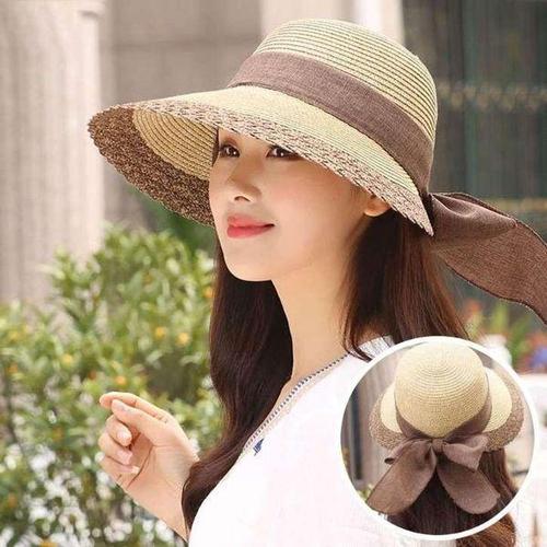 [에이치플러스몰]모던걸 리본 돌돌이 썬캡 여름 그늘 여성창모자 블랙