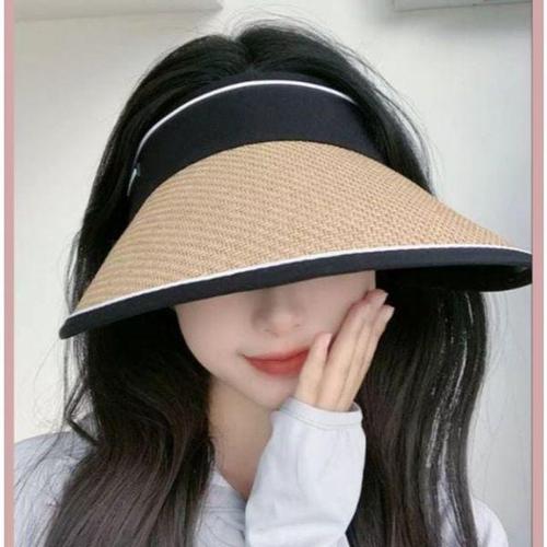 [에이치플러스몰]돌돌이 라탄 썬캡 햇빛 uv 차단 모자 선캡 햇빛가리개