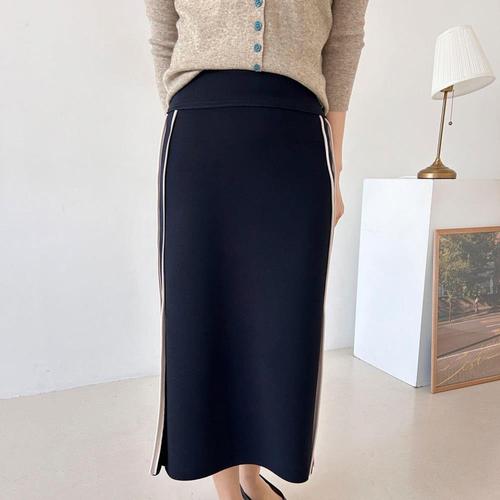 |KSK1210|일자치마 돌잔치 봄하객 사선 옆트임 롱스커트 파이핑