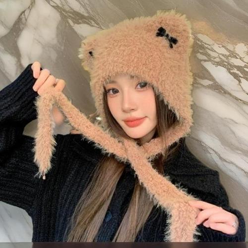 고양이 털 뽀글이 리본 모자 귀여운 귀도리 방한제품 목도리 애니멀 귀마개 귀도리