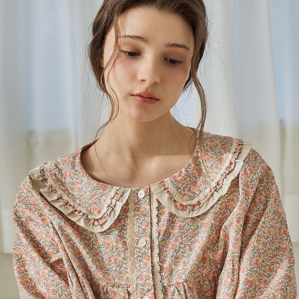 봄과 가을 신상 여성 파자마 세트, 여자 사랑 카디건 파자마, 주름 원단 의류