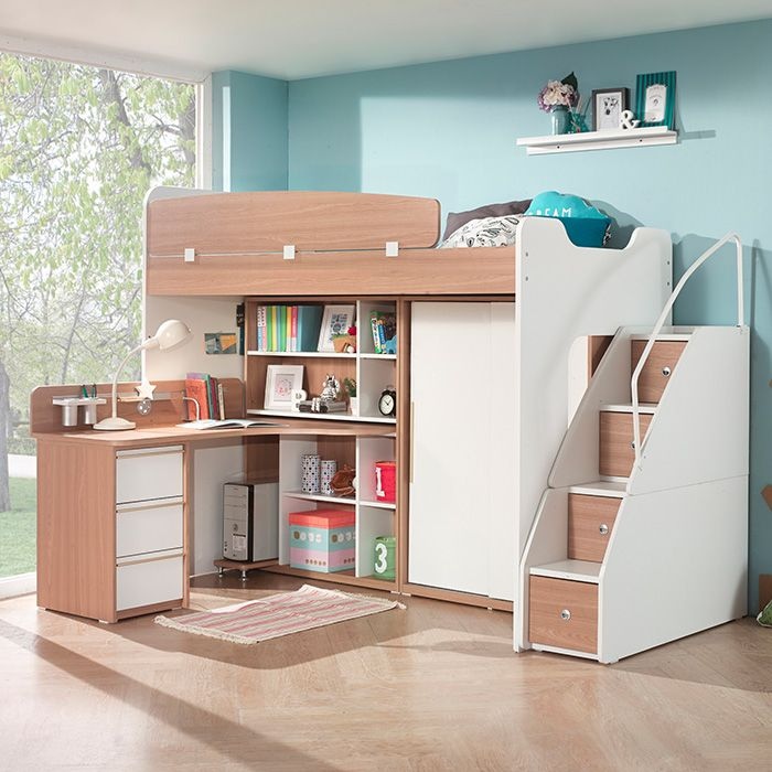 엘리브 스타 벙커 침대 수납계단형 C세트 벙커침대+수납계단+H형책상+옷장X2