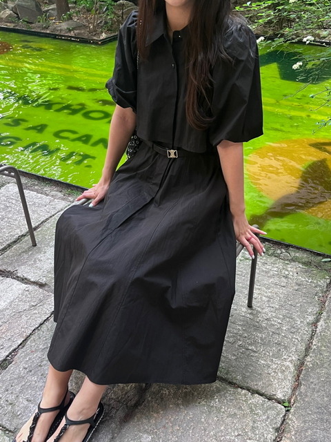 [듀엘] [REAL PICK] 볼륨소매 자켓형 플레어 원피스 BK_L252PSE031