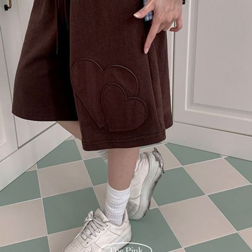 더핑크 / 솔저 하이웨스트 밴딩 하트 패치 트레이닝 반바지
