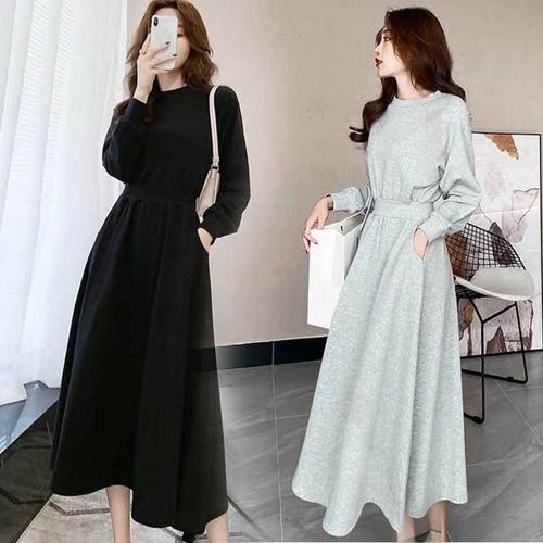 TEMU 플러스 사이즈 - 플러스 사이즈 여성 가을/겨울 드레스, 단색 긴팔 라운드넥 맥시 드레스, 캐주얼 플러스 사이즈 여성 가을/겨울 의류|가을원피스|빅사이즈