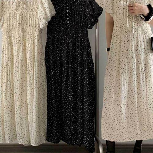 TBZ 여성 도트 드레스 데일리 휴양지 쉬폰 롱원피스 WFNLLVC