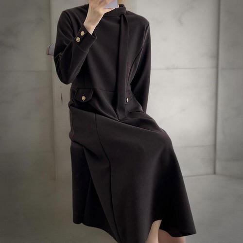 [다잇템]여성 들러리룩 컷아웃 마후라 보우 FW 롱드레스