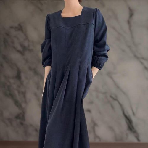 [다잇템]여성 스퀘어넥 FW 롱 들러리룩 주머니 드레스