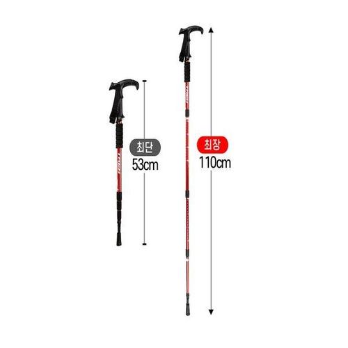 밴프 등산스틱 간편 휴대용 높이조절 지팡이 등산장비 택1 등산스틱 4단 T자형 레드[C