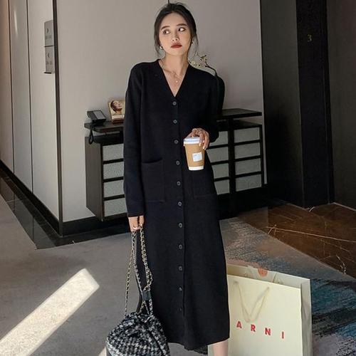 [디니지아]디니지아 2컬러 V넥 니트 드레스0226