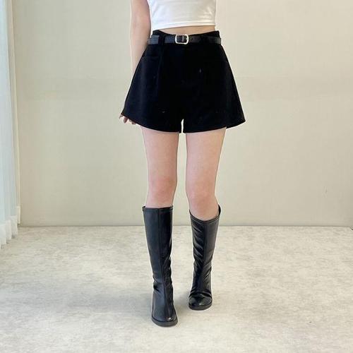 [옷자락] 여자 A라인 겨울숏팬츠 와이드핏 벨트 도톰 반바지