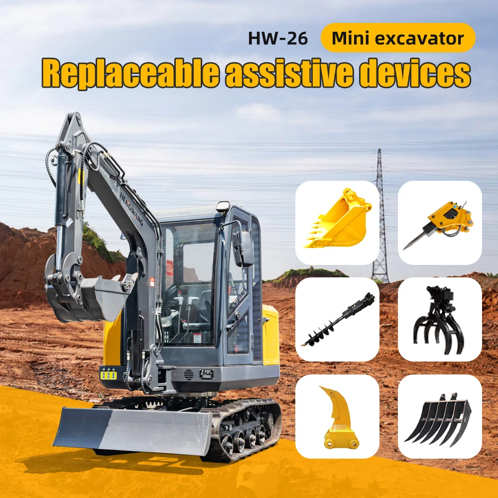 화이이 소형 굴삭기 맞춤형 1.2톤, 신형 크롤러 굴삭기, 강력한 모터, 농업용 EPA, 중국 소형 굴삭기