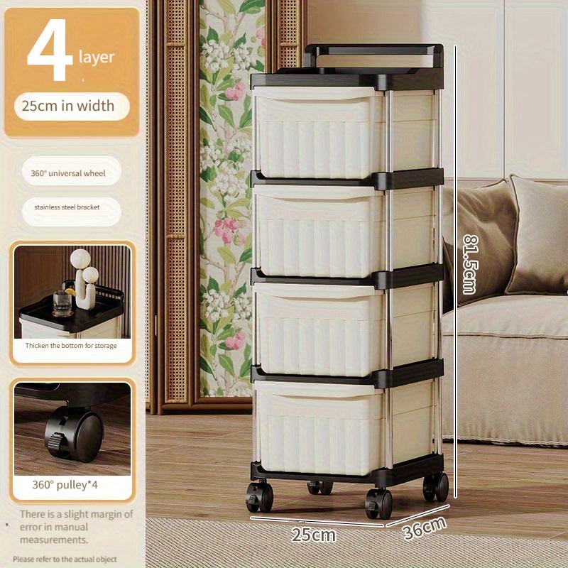 TEMU 4단 슬림 롤링 카트 - 크림색 다목적 모바일 오르간라이저, 360° 바퀴로 주방, 욕실, 침실에 적합 | 좁은 다층 스낵, 메이크업, 가정용 카트, 욕실 오르간라이저 | 좁은 선반 단위 | 내구성 있는 플라스틱 구조, 슬림 롤링 카트