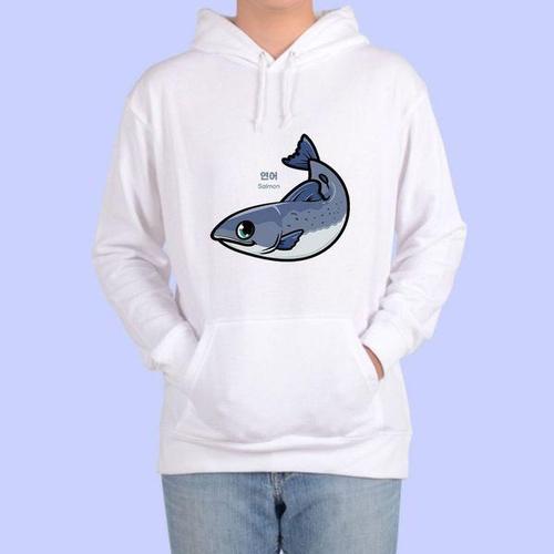 [에이치플러스몰]후드티 남여공용 연어 바다생물 해양 디지털프린팅 가