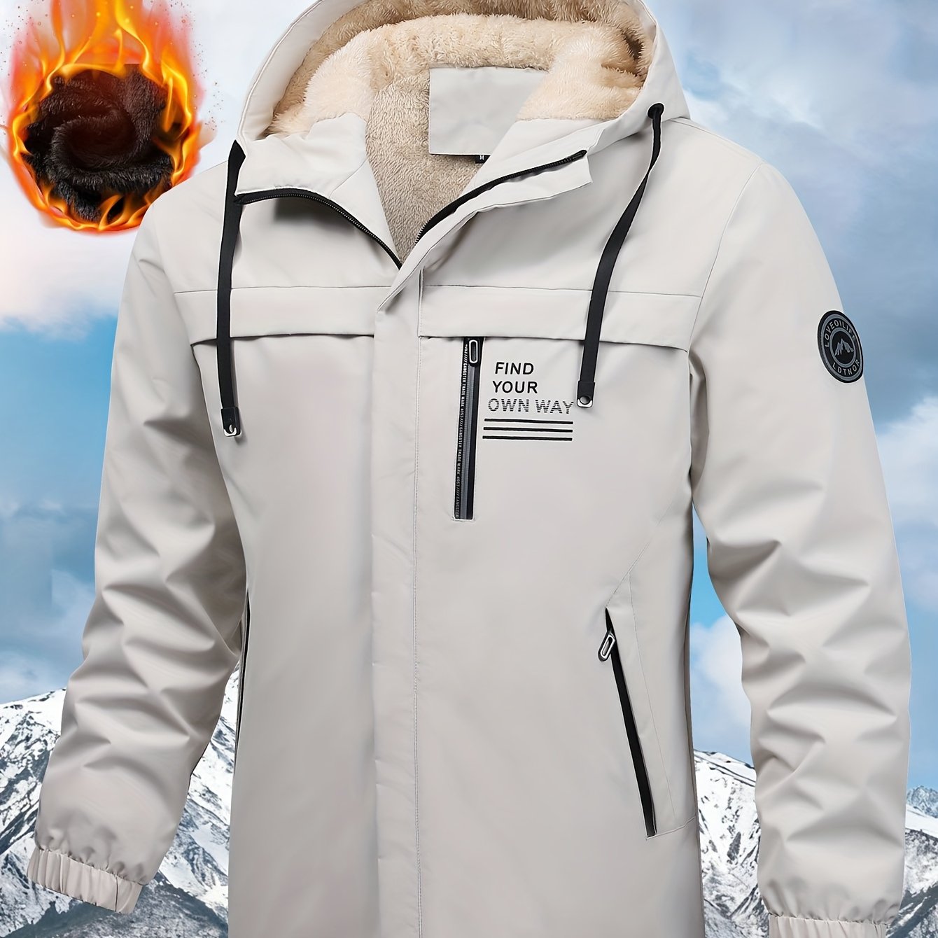 TEMU 라센 OBM 남성용 플리스 안감 겨울 자켓 "Find Your Way" 그래픽, 두꺼운 보온재, 기계 세탁 가능, 레귤러 핏 후드 코트 아웃도어 캐주얼 웨어
