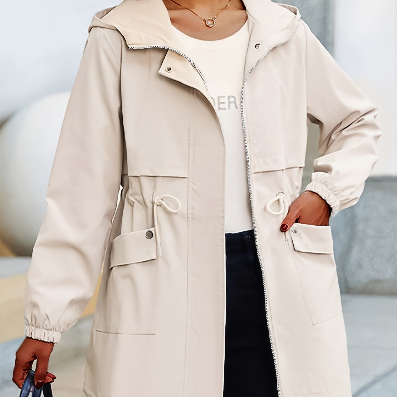 TEMU 플러스 사이즈, 가을/겨울용 후드 드로스트링 웨이스트 트렌치 코트