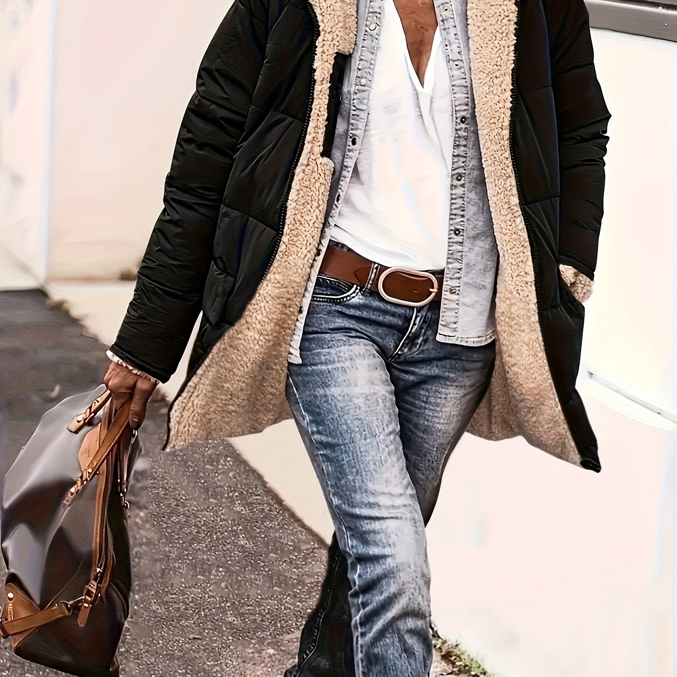TEMU 플러스 사이즈, 여성용 2024 겨울 따뜻한 코트, 양면 양가죽 롱 후드 두꺼운 아우터웨어