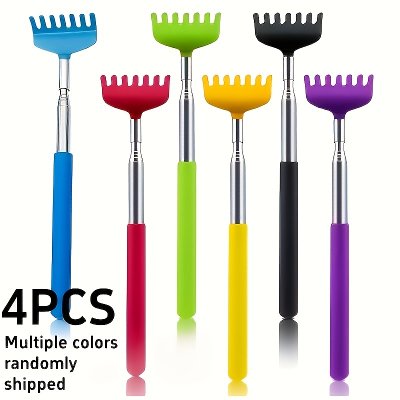 TEMU 4개 세트 확장형 마사지 손잡이 등 긁개 - 접이식 마사지 기기, 컬러풀한 인체공학적 손잡이, 남녀 모두에게 적합, 내구성 있는 휴대용 등 긁개, 크리스마스, 추수감사절 선물로 이상적
