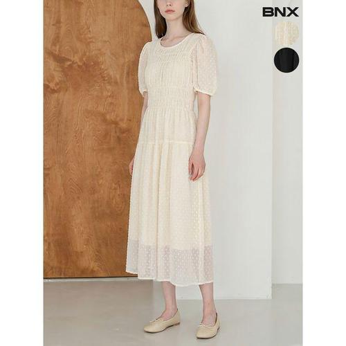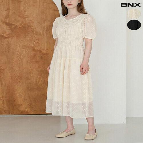[BNX]여성 시스루 도트 벌룬 반팔 원피스