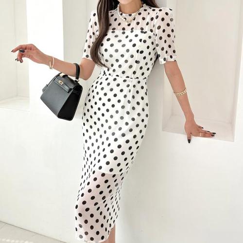 [다잇템]여자 땡땡이 들러리룩 클래식 시폰 원피스