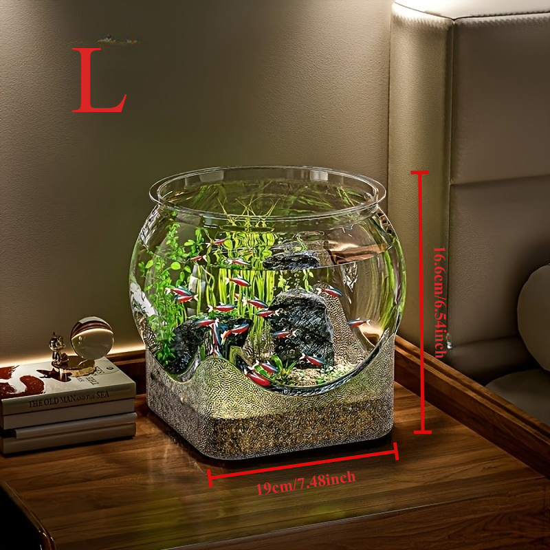 TEMU 2025년 신제품 투명 원형 어항, 천연석 디자인 아크릴 탁상용 수족관, 파손 방지 및 미끄럼 방지, 가정/사무실용, 거북이/작은 물고기 사육용, 실내/실외 장식용, 내구성 좋고 관리가 쉬운