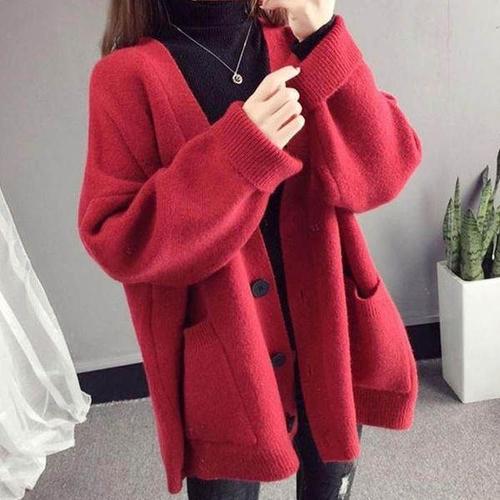 [셀러허브_여성트랜드패션]ONM 아우터가디건 여성 가디건 포인트 빨간색 패션 이