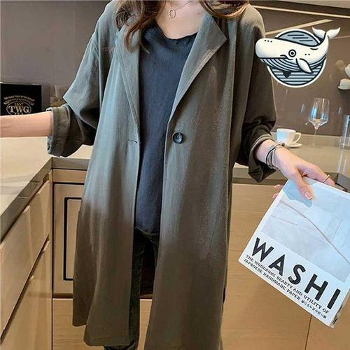 [RGKMQ7QP]린넨 얇은 롱자켓 가을 롤업 패션 여성 가을룩
