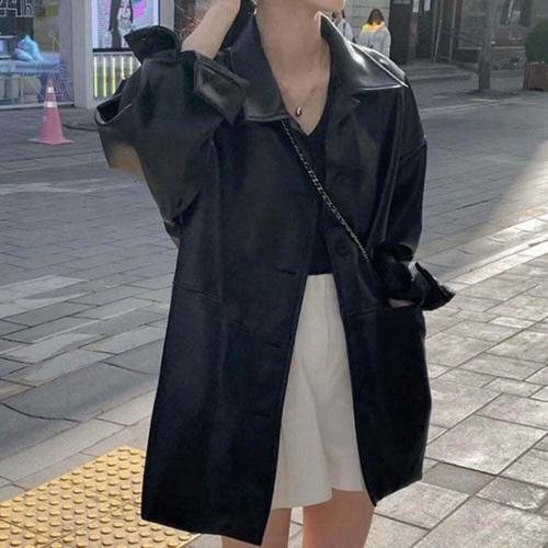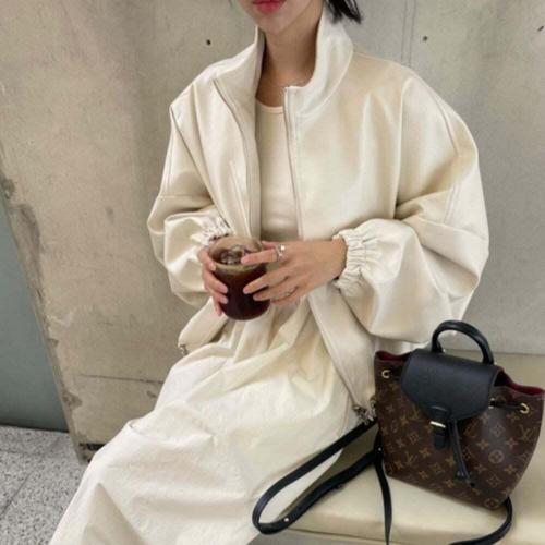 [셀럽하우스]스포티 YKIY7633 데일리 여자 오버핏 레더 라이더 벌룬 자켓