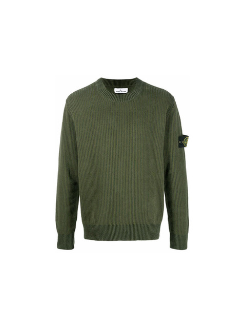 [스톤아일랜드] 13주년 와펜 패치 골지 니트 카키 7515555A5 V0055