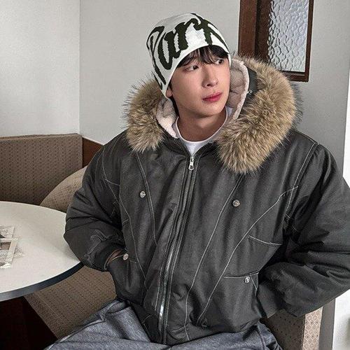 [피팅남]남자 랜코 겨울 크롭 후드 라쿤 절개 패딩 점퍼