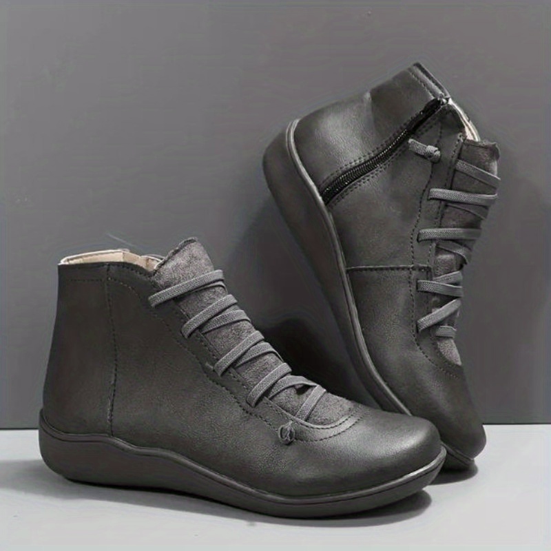 TEMU 여성용 단색 컬러 미니멀리스트 부츠, 사이드 지퍼 겨울 편안한 플랫폼 신발, 캐주얼 라운드 발가락 발목 신발