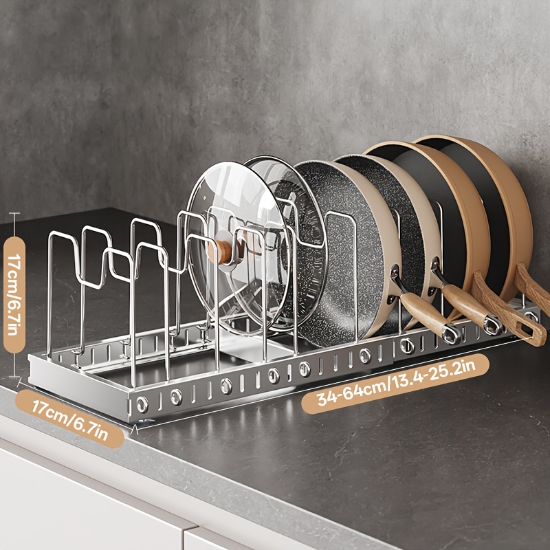 TEMU 1개 확장형 스테인리스 스틸 조절 가능한 냄비 거치대 - 잠금 기능 선반 포함, 내구성 강한 확장형 쿡탑 정리대, 냄비, 팬, 도마, 접시 수납용 - 공간 절약형 주방 정리대