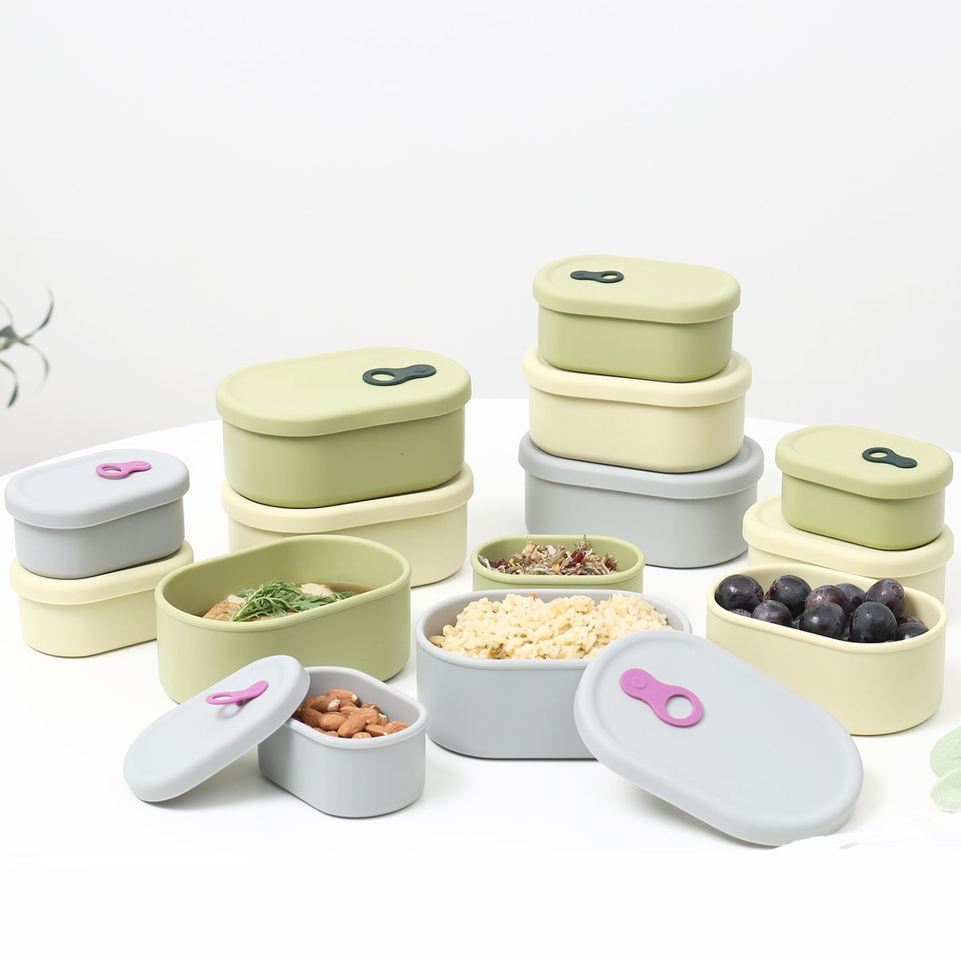 타원형 실리콘 밀폐용 용기 350ml 스팀홀 냉동밥 반찬