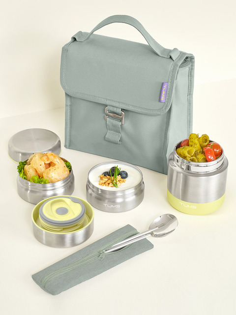 TEMU 스타일리시한 사무실용 도시락 가방, 플라스틱 용기 & 인조 가죽 손잡이 포함 (노랑/녹색). 동기부여 문구 포함, 직사각형 모양. 비식품 접촉 보온 도시락 가방