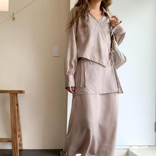 [하프클럽/]크머스 랩스타일 여성 치마 투피스 세트 블라우스