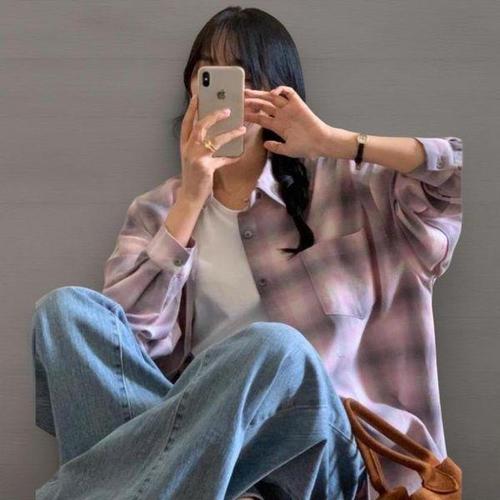 [신상오픈런]여성 체크무늬 랩 스타일 루즈핏 단추 셔츠