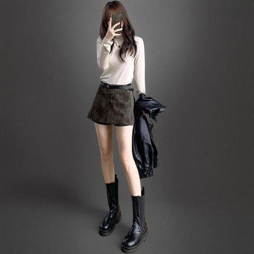 [신상오픈런]여성 빈티지 스타일 워싱 스웨이드 벨트 반바지 치마